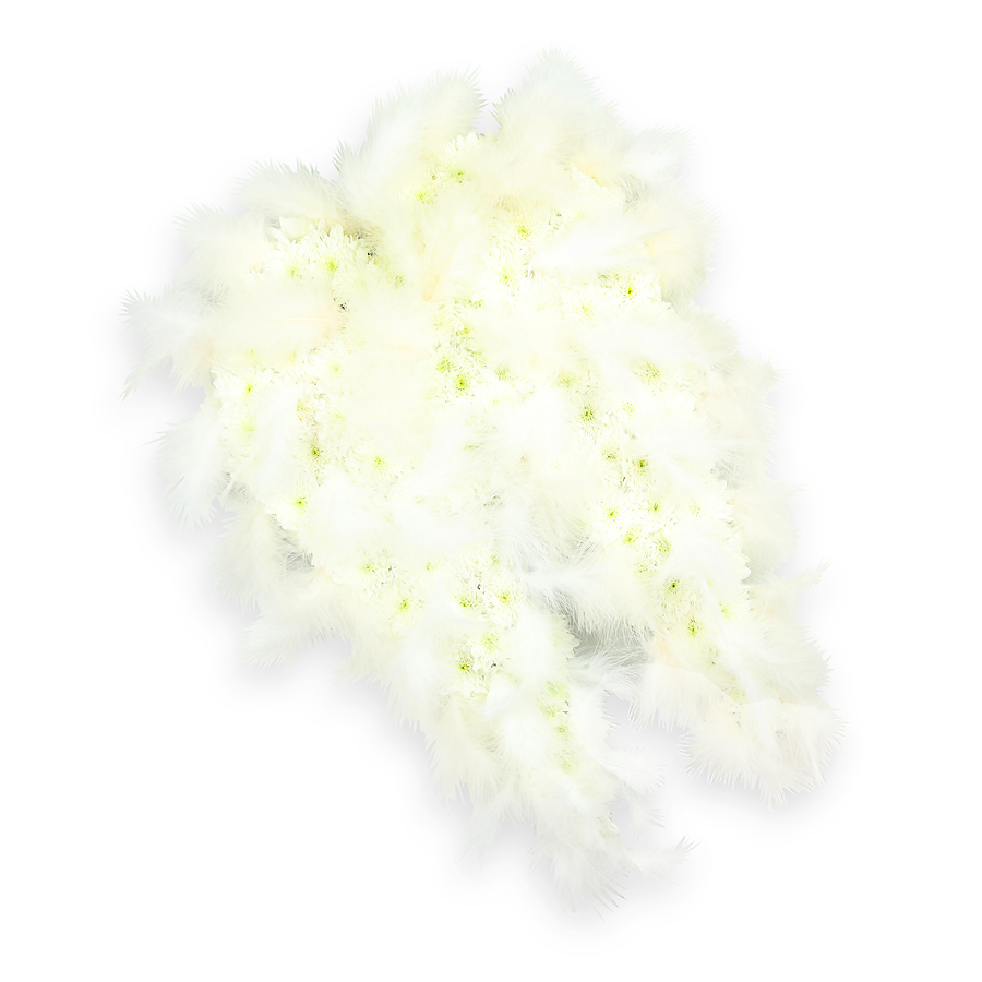 To offer your sincere condolences and prayers during a really painful time, you need a special tribute that will perfectly express your feelings. This elegant floral arrangement is created using fresh white chrysanthemums and white feathers.