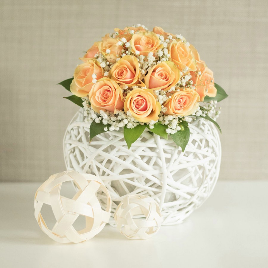Enchanting Orange Rose & Gypsophila Flower Arrangement